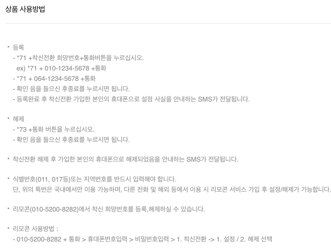 2. 고객센터(SKT, KT, U+) 앱/전화를 통해서 착신을 설정한다. (비용 1,000원 정도)