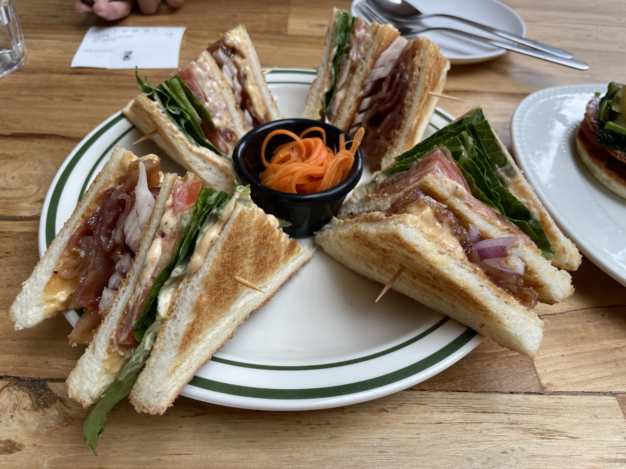 제 점수는요~ 별점 3점 ⭐️⭐️⭐️ 가로수길에서 토도스 가려다가 너무 웨이팅이 길어서 가까이 있는 새로 오픈한 썬댄스로 갔다. 밖에서 보면 분위기가 너무 좋아 보이기도 하고 이국적이여서 꼭 한번 가봐야지 했는데 카페인줄 알고 때를 못잡았다. 아니 그런데 사실상 레스토랑이네?! 들어가자 마자 자리를 잡는데 주문은 키오스크를 통해서 셀프로... 진동벨까지 셀프로 가져가는 시스템에 또 한번 놀램 ㅋㅋ 물도 셀프로 셀프가 아닌게 없네.... 주문은 썬댄스 대표 메뉴로 보이는 썬댄스 B.L.T 샌드위치와 에그 베네딕트로 했다. 기다리는 동안 가게 안을 보는데 인스타 겜성으로 잘 꾸며놓은것 같다. 근데 뭔가 이상하게도 분위기가 엄청 어수선하다. 주문한 음식이 나왔는데 맛이 묘하네 ㅎㅎ 맛이 없지는 않는데 샌드위치..